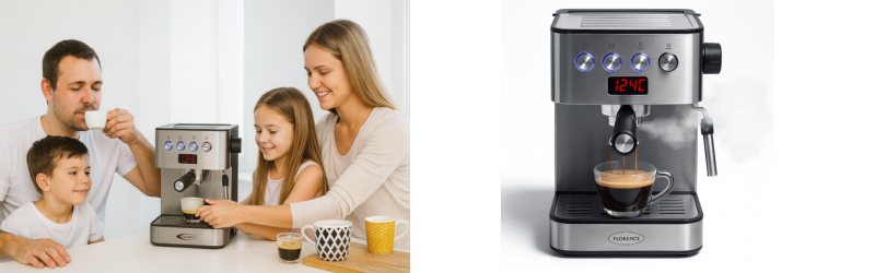 ☕ آلة قهوة إسبريسو FLORENCE – أداء قوي بـ 💪 1050 واط وضغط ☄️ 15 بار لتحضير قهوة غنية وعطرية.