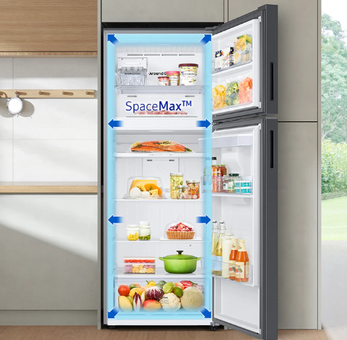 Le réfrigérateur Samsung offre une capacité supplémentaire de 20 litres*, idéale pour conserver davantage de nourriture fraîche. Grâce à la technologie SpaceMax™, son revêtement spécial à haute teneur en polyuréthane réduit l'épaisseur des parois sans compromettre l'efficacité énergétique, offrant ainsi plus d'espace intérieur.